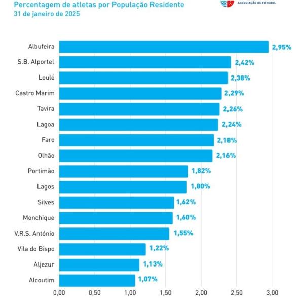AFA deu a conhecer o número de atletas inscritos por concelho em janeiro