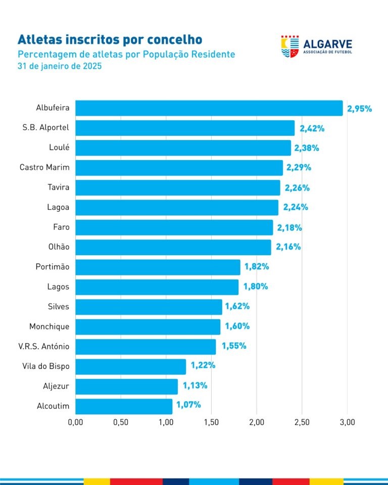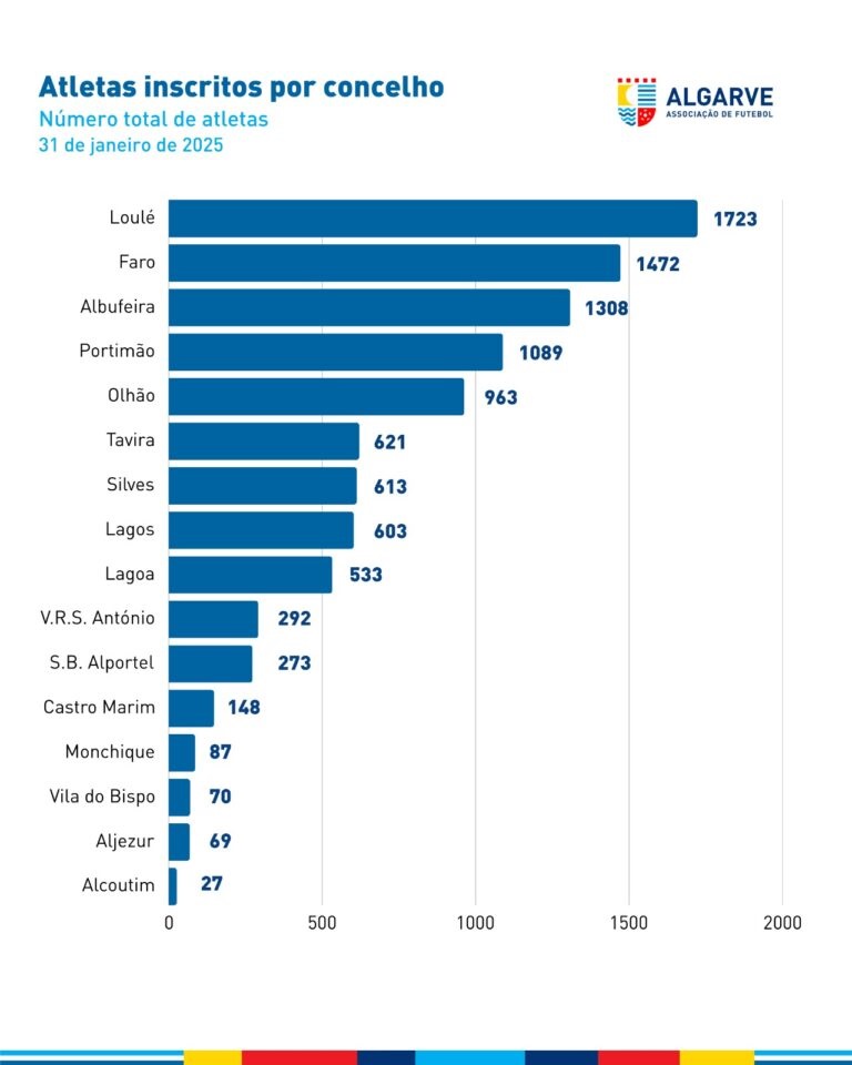 A Associação de Futebol do Algarve (AFA) divulgou recentemente a lista de atletas inscritos pelos 16 concelhos algarvios desde o início da presente época desportiva até ao dia 31 de janeiro de 2025.