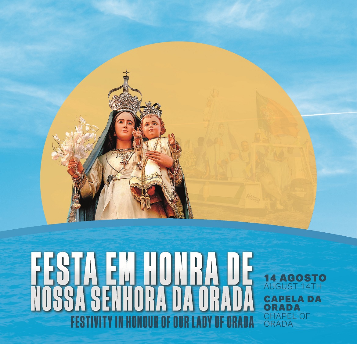 O dia 14 de agosto, à semelhança de anos anteriores, marca o ponto alto da Festa. As celebrações têm início pelas 16h15, na Ermida de Nossa Senhora da Orada, com a oração do Terço. Pelas 17h00 celebra-se a Eucaristia Vespertina da Solenidade da Assunção de Nossa Senhora, seguida de Procissão até ao cais de embarque em direção ao e regresso para a Ermida.
