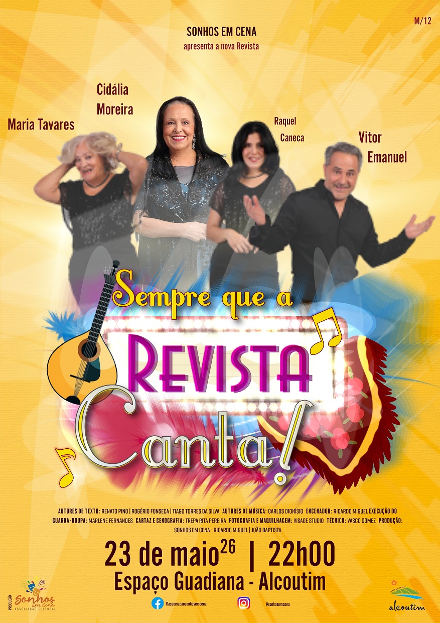 O Espaço Guadiana, em Alcoutim, recebe no próximo dia 23 de maio, pelas 22h00, o espetáculo revisteiro "Sempre que a revista canta”, com a grande fadista Cidália Moreira.