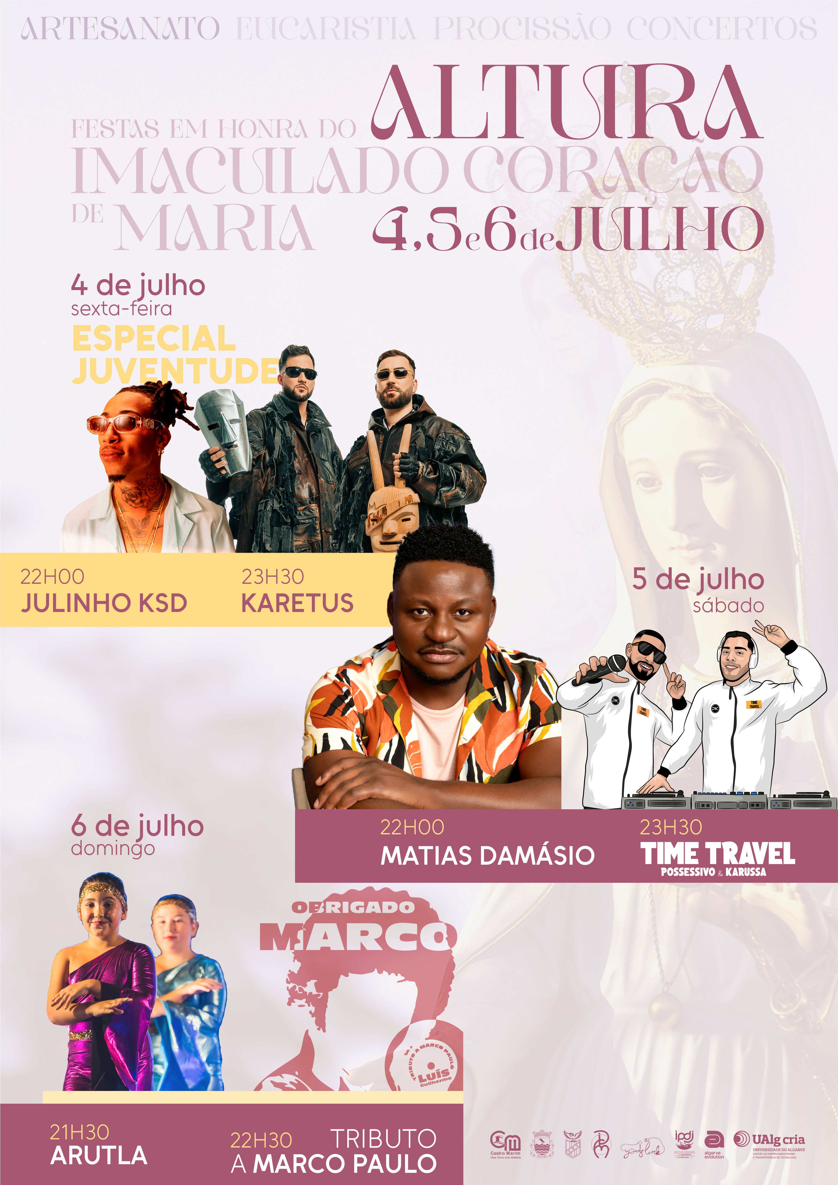 As Festas em Honra do Imaculado Coração de Maria vão decorrer entre os dias 4 e 6 de julho, em Altura, com várias atividades religiosas, desportivas e concertos de grandes nomes da música portuguesa.