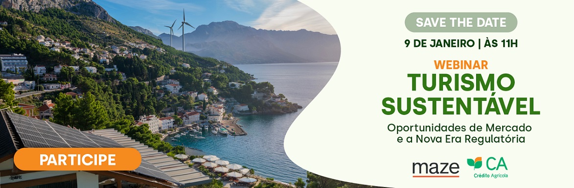 O Crédito Agrícola, em parceria com a maze, anuncia o lançamento de um programa inovador de capacitação em sustentabilidade dedicado aos seus clientes do sector do turismo. E para assinalar o lançamento deste programa, realizar-se-á um webinar no dia 9 de janeiro de 2025, às 11:00 horas, disponível para participação em Webinar Turismo Sustentável (https://events.teams.microsoft.com/event/4501a01e-54fd-46ab-8916-c583c4cc69f1@d601ba81-1b13-415c-8c5d-91bcc6df399f).