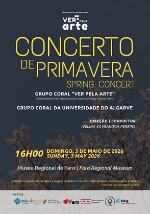 O Museu Regional de Faro recebe, no próximo domingo, dia 3 de maio, às 16h00, o Concerto de Primavera, que reúne o Grupo Coral Ver pela Arte e o Grupo Coral da Universidade do Algarve, sob direção de Ivelina Kavrakova-Pereira.