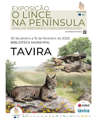 Em Tavira, de 30 de janeiro a 15 de fevereiro, visite a Biblioteca Municipal Álvaro de Campos e conheça o trabalho de conservação do Lince-ibérico com a exposição “O Lince na Península – Conectar Territórios e Consolidar Populações”, promovida pela CIMBAL e o projeto LIFE LYNXCONNECT, com o apoio da Câmara Municipal de Tavira.