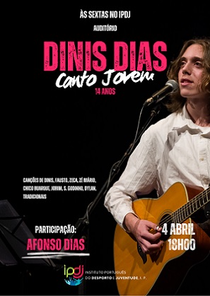 E neste dia 4 de abril, às 18 horas, Dinis Dias apresenta, no auditório do IPDJ, em Faro, o concerto unipessoal “Canto Jovem”, no figurino de one boy show.