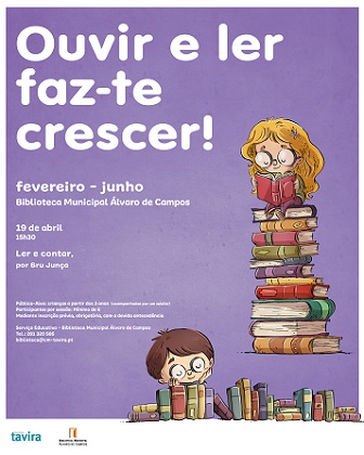 Em Tavira, no sábado, dia 19 de abril, às 15h30, a Biblioteca Municipal Álvaro de Campos recebe Bru Junça, mediadora de leitura e contadora de histórias, para a sessão “Ler e contar” – uma viagem pelo universo dos contos e da narração oral.