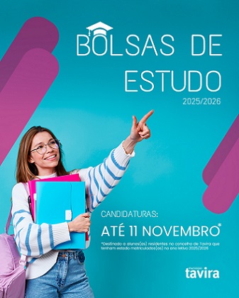 O Município de Tavira valoriza o mérito e incentiva o sucesso dos estudantes tavirenses e, como tal, tem abertas até 11 de novembro as candidaturas às Bolsas de Estudo 2025/2026.