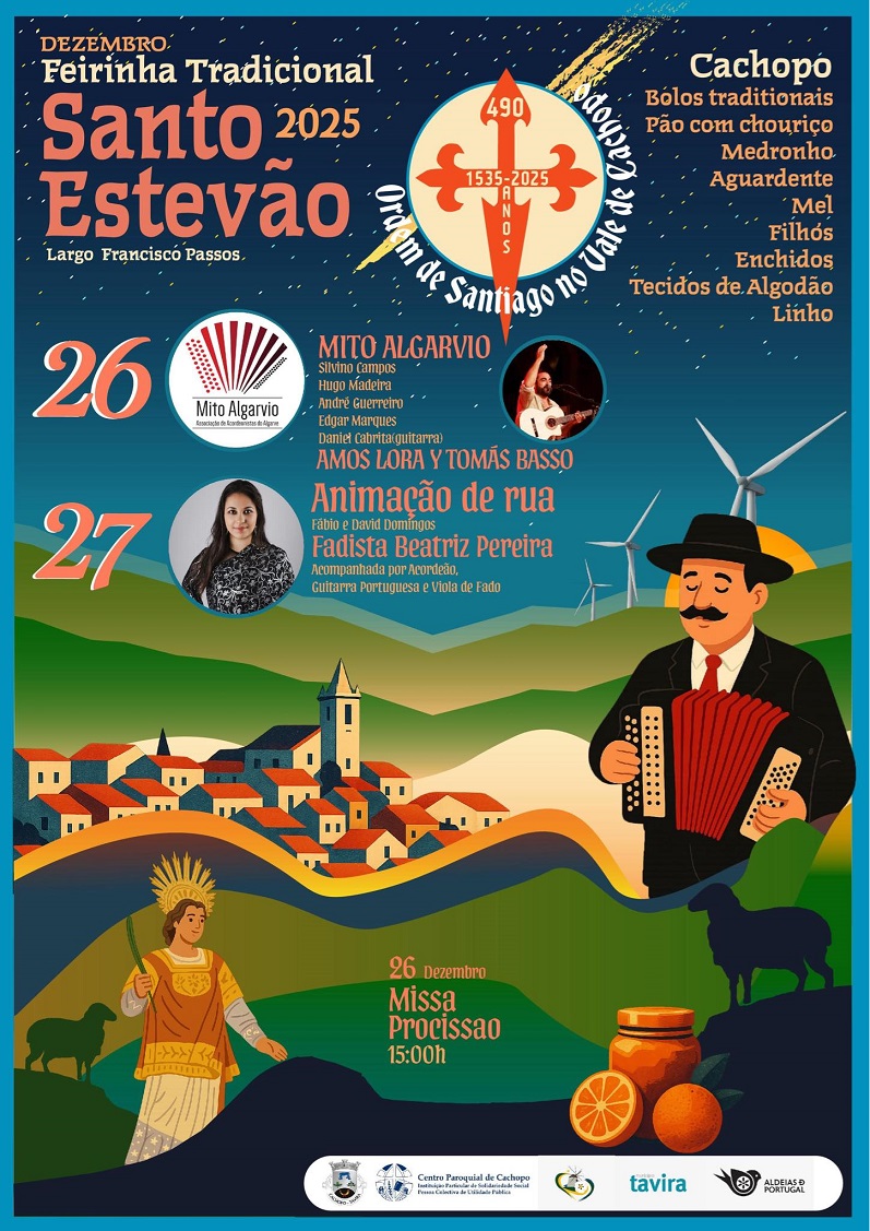 Nos dias 26 e 27 de dezembro, o Largo Francisco Passos, volta a ser palco das celebrações de Santo Estêvão, com aquilo que melhor representa Cachopo: tradição, convívio e sabores da terra.