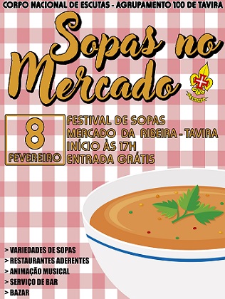 O Agrupamento 100 de Tavira do Corpo Nacional de Escutas vai realizar a segunda edição do Sopas no Mercado 2025, no dia 8 de fevereiro, no Mercado da Ribeira, em Tavira.