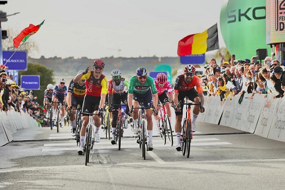 Nas dificuldades finais do percurso a Visma – Lease a Bika impôs um ritmo elevado, a fuga foi anulada, mas os sprinters não descolaram do pelotão, pelo que na chegada à capital algarvia estavam reunidas todas as condições para uma decisão entre os homens mais rápidos da Volta.