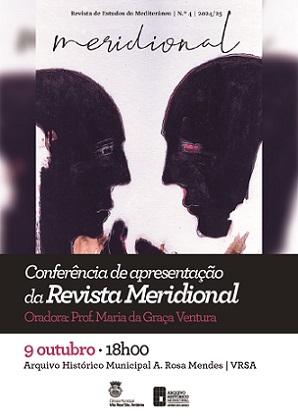 Nesta quinta-feira, dia 9 de outubro, pelas 18h00, o Arquivo Histórico Municipal António Rosa Mendes, em Vila Real de Santo António, irá receber a apresentação do 4.º número da Meridional - Revista de Estudos do Mediterrâneo 2024 / 2025, publicada pelo Instituto de Cultura Ibero-Atlântica.