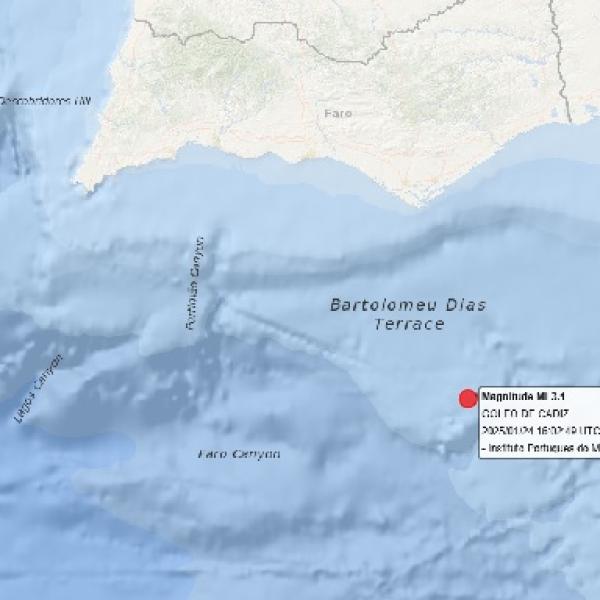 Sismo de magnitude 3.1 na escala de Richter registado a 60 km de Olhão