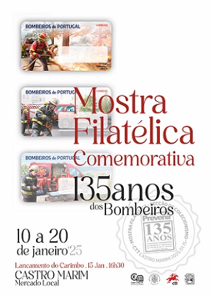 Entre os dias 10 e 20 de janeiro, o Mercado Local de Castro Marim terá patente uma Mostra Filatélica Comemorativa dos 135 anos da Associação Humanitária de Bombeiros Voluntários de Vila Real de Santo António e Castro Marim.