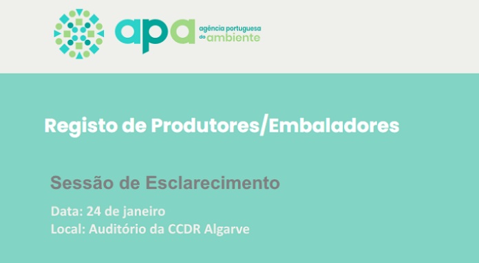 A Agência Portuguesa de Ambiente (APA) promove uma sessão de esclarecimento presencial no âmbito do Registo de Produtores/Embaladores, a qual decorrerá no próximo dia 24 de janeiro (sexta-feira), entre as 10h30 e as 12h30, nas