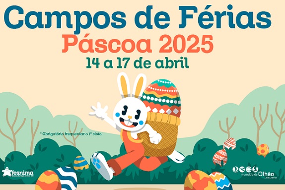 O Município de Olhão e a Fesnima organizam, mais uma vez, os Campos de Férias da Páscoa, este ano nos dias 14,15,16 e 17 de abril, com o objetivo de proporcionar às crianças do concelho férias divertidas, com atividades desport