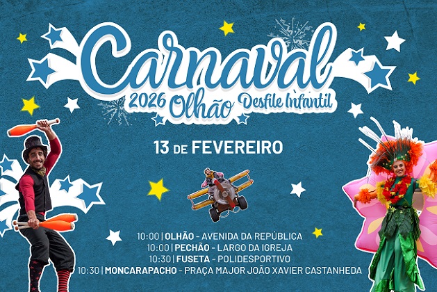 A alegria, a criatividade e a energia contagiante das crianças voltam a sair à rua para celebrar o Carnaval no concelho de Olhão, com a realização do já tradicional Desfile de Carnaval Infantil, que terá lugar no próximo dia 13