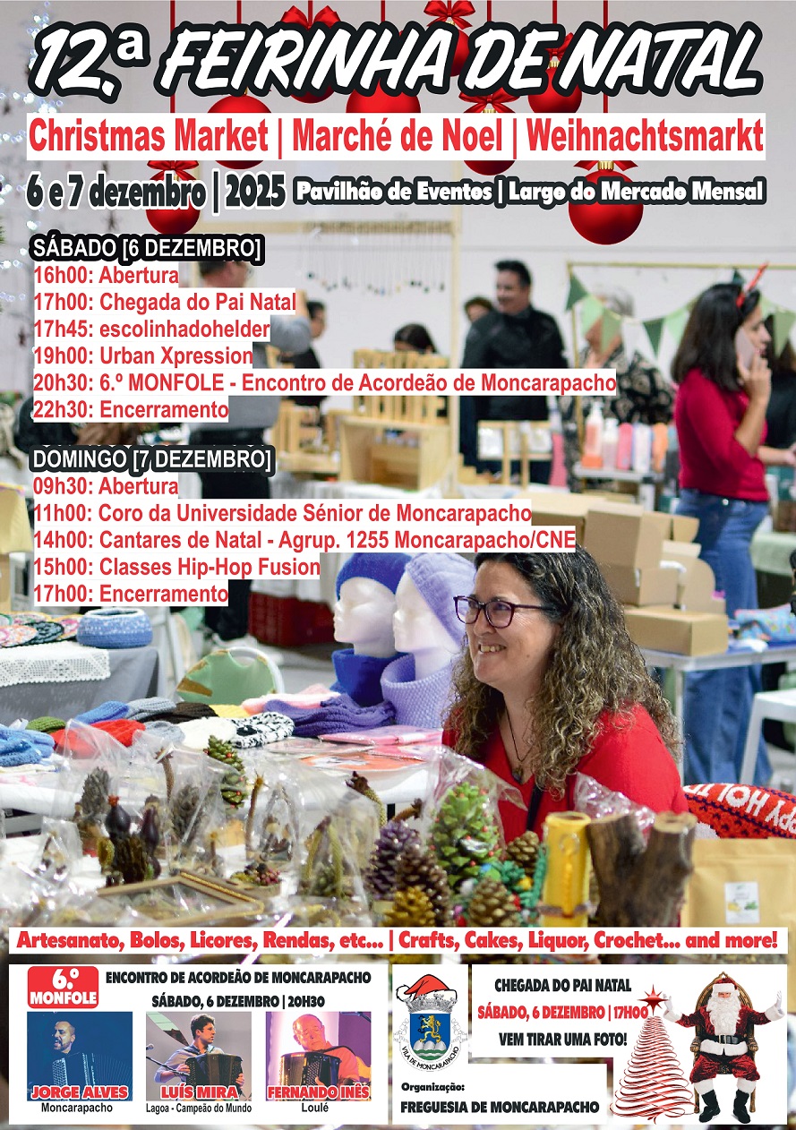 Moncarapacho é Vila de Natal! Com organização da Freguesia de Moncarapacho com o apoio do Município de Olhão, a época natalícia vai ser comemorada com luz, cor, sabor e muita animação.