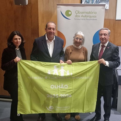 Olhão recebeu este ano a bandeira verde de Autarquia Familiarmente Responsável, distinção atribuída pelo Observatório das Autarquias Familiarmente Responsáveis (OAFR) às autarquias que investem numa política integrada de apoio