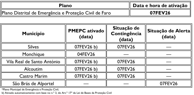 Período: 12:00 horas de 10 fevereiro – 12:00 horas de 11 fevereiro