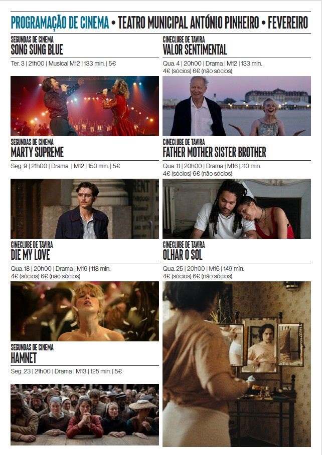 Ao longo do mês de fevereiro, o Teatro Municipal António Pinheiro, em Tavira, apresenta uma programação cinematográfica abrangente, pensada para todos os públicos, a qual inclui musical e drama.