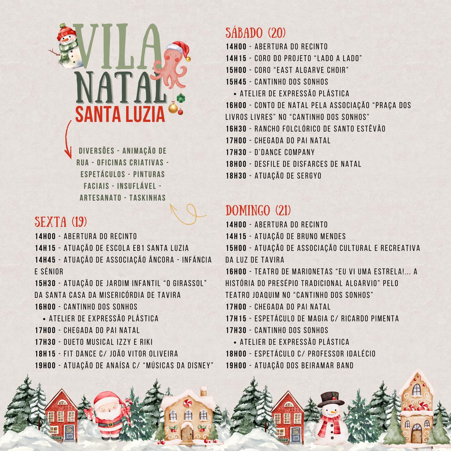 A Freguesia de Santa Luzia, em parceria com o Município de Tavira, promove mais uma edição da Vila Natal – Santa Luzia 2025. É nestes dias 19, 20 e 21 de dezembro.