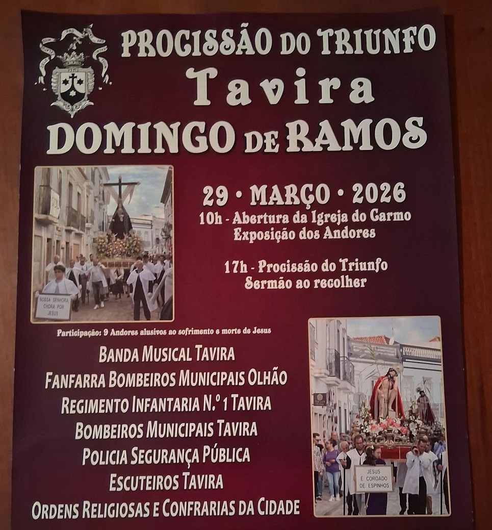 A cidade de Tavira prepara-se para receber, neste domingo, dia 29 de março, mais uma edição da tradicional Procissão do Triunfo, integrada nas celebrações do Domingo de Ramos.