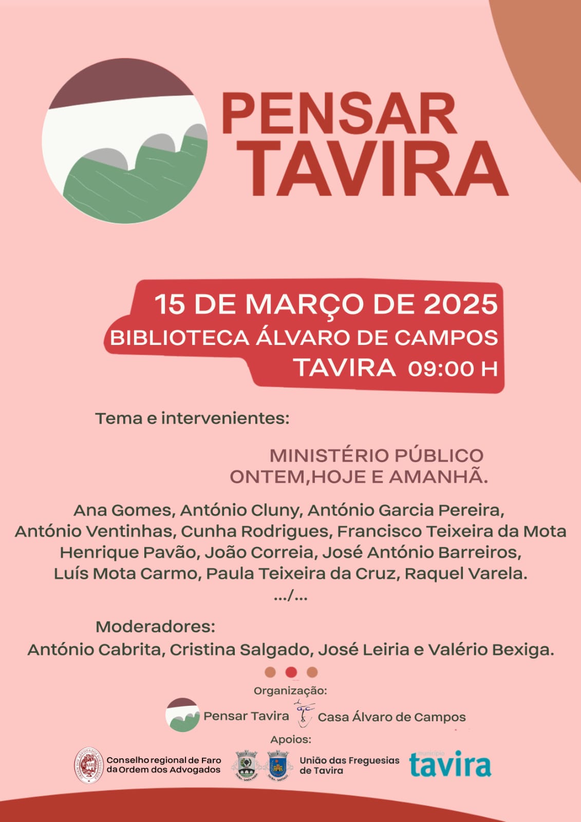Dia 15 de março realiza-se um encontro em Tavira, em que se vai falar do Ministério Público.