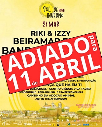 O Festival Sol de Inverno 2026, previsto para o dia 21 de março, em Tavira, foi adiado devido às condições meteorológicas adversas.